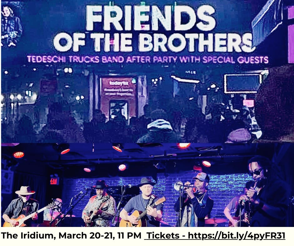 Gabe will be back on the road with TTB starting March 10 at the Beacon Theatre. He has joined Friends Of The Brothers the last two years at our after-show parties at The Iridium and I expect him back this year - March 20 and 21. They will sell out, so if you’re going to be in in NYC, grab your tickets!